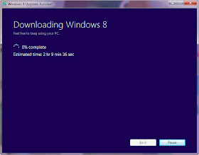 The upgrade assistant will now download the Windows 8 installer files to your computer. This process may take a while since it will require the transfer of ~2 GB of data from Microsoft servers to your disk.