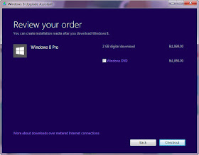 Next you need to order your Windows 8 upgrade pack right inside the installation wizard. Choose the “Checkout” option, enter your Credit Card details and the next screen will show your Windows 8 product key that you may need at the time of installation. You don’t have to write then down on paper and Microsoft will also send a receipt of your order and the Windows serial number to your email address.
